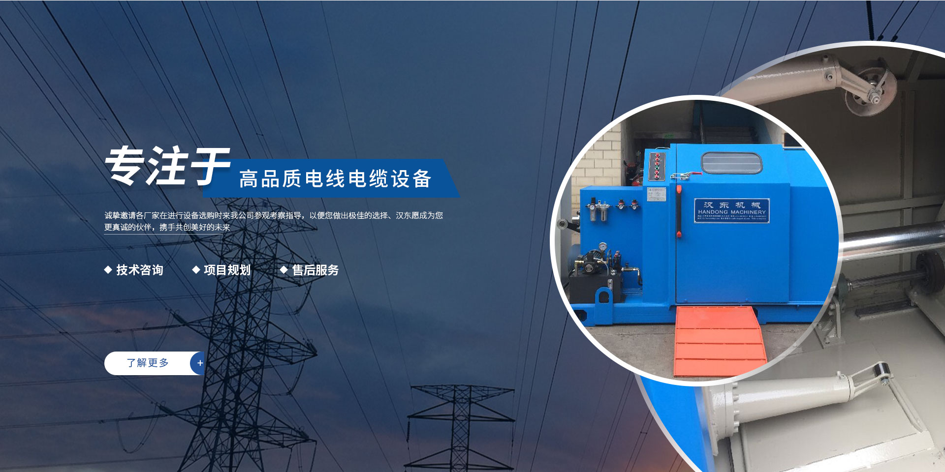 常州漢東機(jī)械始創(chuàng)于2006年,是集電線電纜機(jī)械設(shè)計(jì)、開發(fā)、制造、安裝、調(diào)試為一體化的高科技企業(yè)。本公司自開業(yè)以來,積極引進(jìn)日本,歐美等國外電線電纜設(shè)備之先進(jìn)技術(shù),先后成功推出了達(dá)到行業(yè)先進(jìn)水平的電線電纜設(shè)備,主要產(chǎn)品有擠出、繞包、束線、成纜等電線電纜固定設(shè)備。在提供系統(tǒng)設(shè)備的同時(shí),還向客戶提供售前技術(shù)咨詢、項(xiàng)目規(guī)劃、以及售后服務(wù)。我公司本著“以人為本、科技先導(dǎo)、用戶為上”的宗旨,為客戶提供牢靠的產(chǎn)品與省心的服務(wù)。漢東愿成為您更真誠的伙伴,攜手共創(chuàng)美好的未來!
